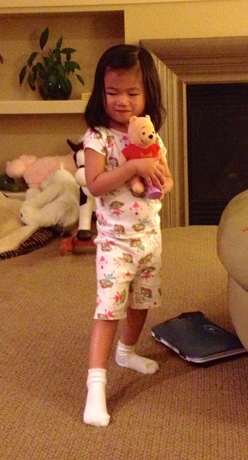 Lately, Katie has enjoyed letting us know when she wants her picture taken. She usually grabs a toy, poses with it, says, "Cheese!" and looks at us. Her "cheese" is our hint to take her picture.